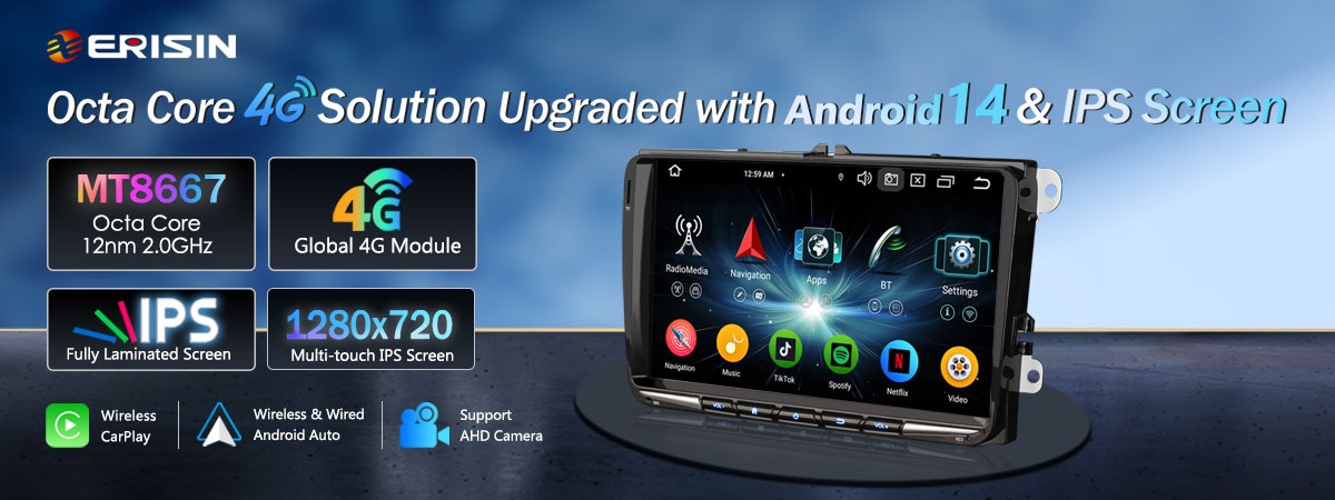 Erisin ES8909V 7 "IPS شاشة Android-صوت السيارة لسيارات VW Bora Passat مقعد سكودا موضوع UI-stay GPS 4G