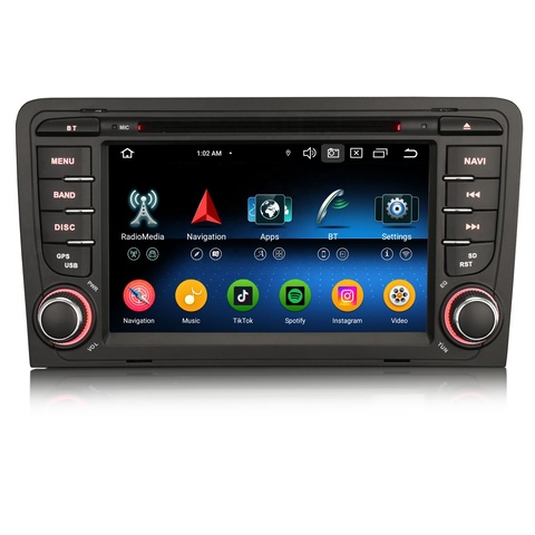 מערכת מולטימדיה לרכב Erisin ES6573A בגודל 7 אינץ', מעבד שמונה ליבות, מערכת הפעלה אנדרואיד 14.0, מעבד DSP, מסך IPS, GPS, נגן DVD, מתאים לאאודי A3 S3 RS3 RNSE-PU, קישוריות BT5.0, בקרת הגה.